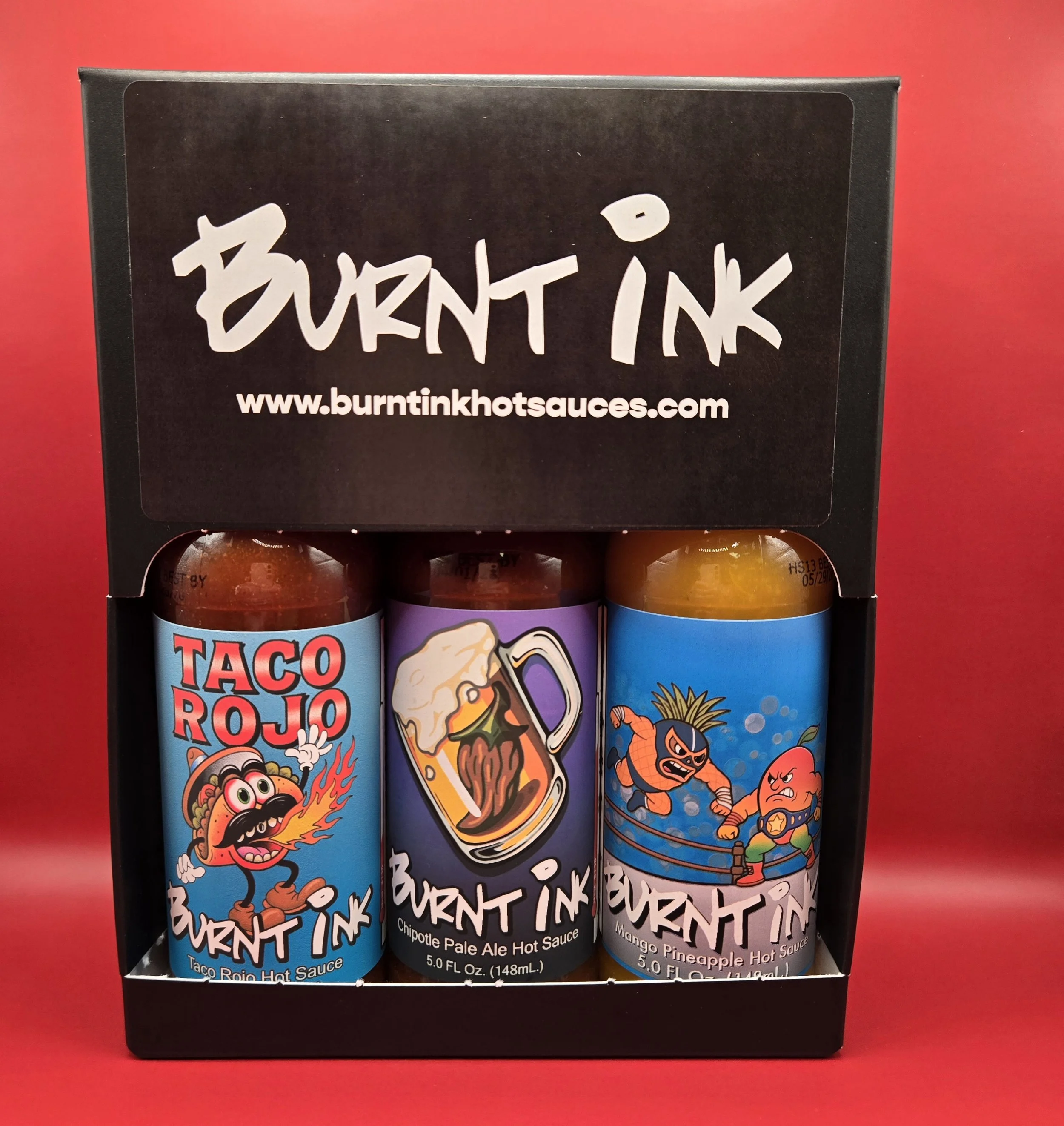 Taco 3 pack Sale Price: $29.99 Original Price: $36.00 Sale Taco Rojo Sale Price: $9.99 Original Price: $11.99 Sale Burnt Ink- 3 pack Sale Price: $29.99 Original Price: $36.00 Sale Burnt Ink- Ghost Chile Sriracha Sale Price: $9.99 Original Price: $13.99 Sale Mango Pineapple Sale Price: $9.99 Original Price: $13.99 Sale Burnt Ink - Chipotle Pale Ale Sale Price: $9.99 Original Price: $13.99 Sale